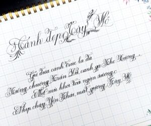 Chọn bút mực chất lượng: Sử dụng bút mực ngòi lá tre hoặc ngòi mài để tạo nét chữ thanh, đậm ấn tượng.